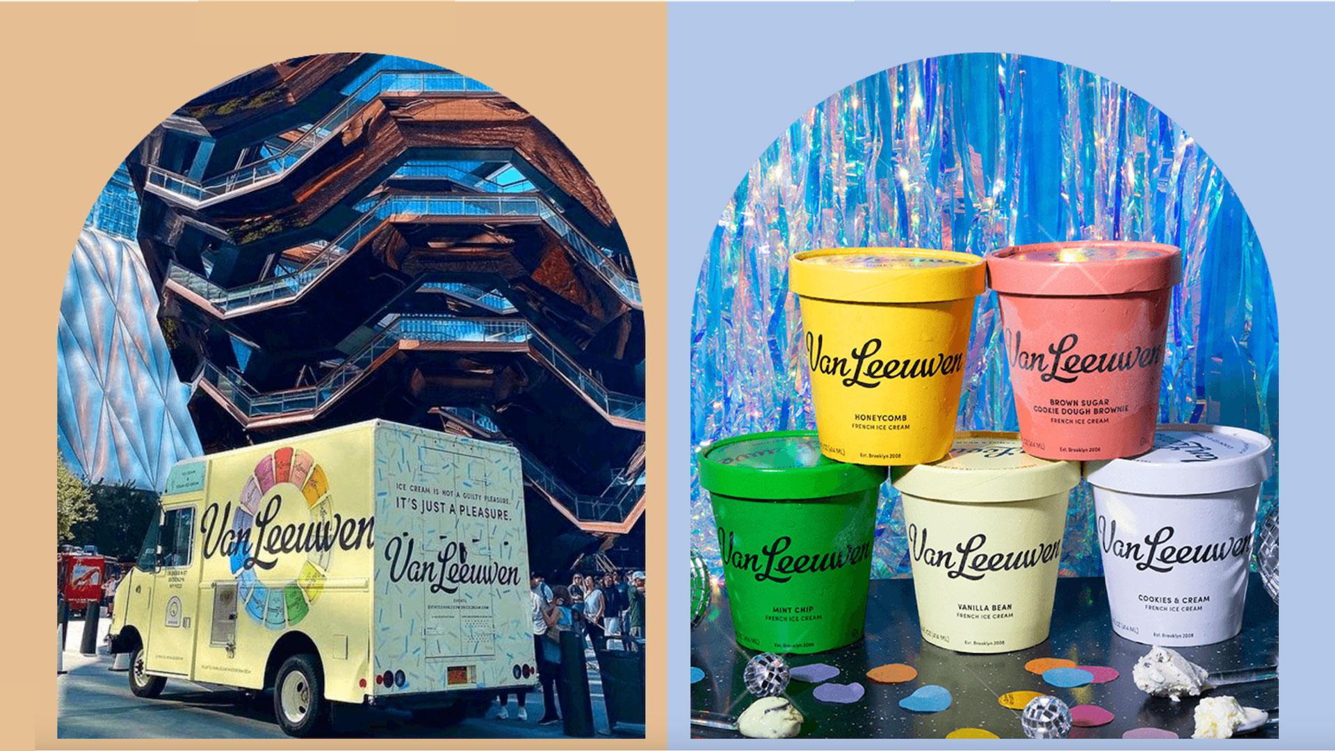 Van Leeuwen是一家手工冰淇淋公司,2008年始于纽约市的一辆黄色餐车。它以使用简单原料制作的高品质传统乳制品和纯素冰淇淋而闻名,现已发展成为全国性品牌,拥有超过100家冰淇淋店,产品进驻超过20,000家零售店和杂货店。